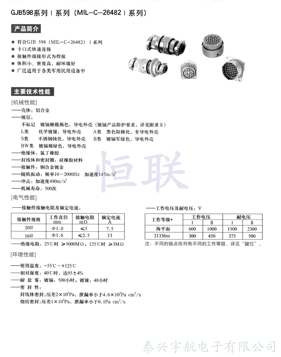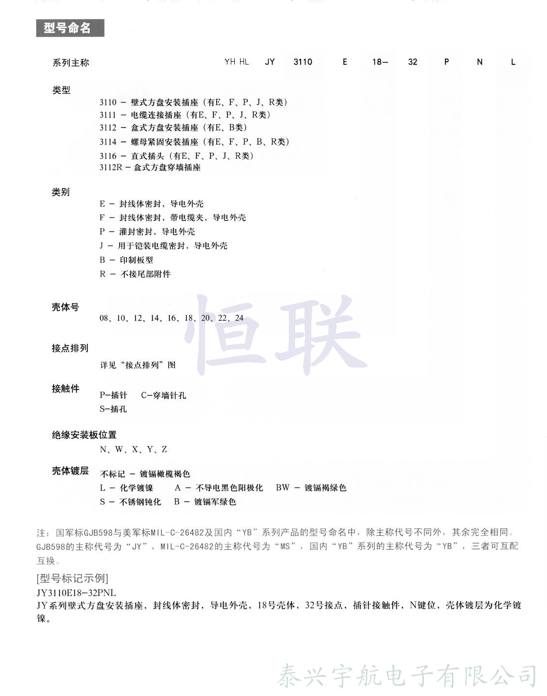 GJB598系列YB圓形電連接器,符合GJB 598(MIL-C-26482)Ⅰ 系列